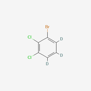 This compound is the isotopically labeled form of 1-Bromo-2,3-dichlorobenzene, where three hydrogen atoms on the benzene (B151609) ring have been replaced with deuterium (B1214612). This substitution results in a higher molecular weight, which is crucial for its primary application as an internal standard in mass spectrometry-based analytical techniques.