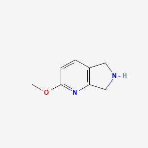 The mechanism of action of 2-methoxy-6,7-dihydro-5H-pyrrolo[3,4-b]pyridine involves its interaction with specific molecular targets. For instance, derivatives of this compound have been shown to inhibit receptor-interacting protein kinase 1 (RIPK1), which plays a role in necroptosis, a form of programmed cell death . The compound’s effects are mediated through binding to these targets and modulating their activity, leading to various biological outcomes.
