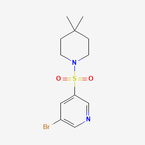 3-Bromo-5-(4,4-dimethylpiperidin-1-ylsulfonyl)pyridine: is a chemical compound with the molecular formula C12H17BrN2O2S and a molecular weight of 333.24 g/mol . This compound is characterized by the presence of a bromine atom at the third position of the pyridine ring and a 4,4-dimethylpiperidin-1-ylsulfonyl group at the fifth position. It is used in various scientific research applications due to its unique chemical properties.