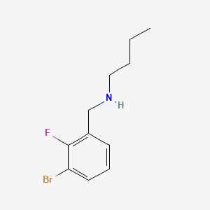 The mechanism of action of 1-Bromo-2-fluoro-3-(butylaminomethyl)benzene involves its interaction with various molecular targets. The presence of the bromine and fluorine atoms, along with the butylaminomethyl group, allows it to participate in various chemical reactions, potentially leading to the formation of active intermediates that interact with biological targets . The exact pathways and molecular targets depend on the specific application and context of use.