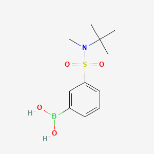 The mechanism of action of 3-(N-t-butyl-N-methylsulfamoyl)phenylboronic acid involves its ability to form reversible covalent bonds with diols and other nucleophiles. This property makes it useful in Suzuki-Miyaura coupling reactions, where it acts as a boron donor to facilitate the formation of carbon-carbon bonds . The molecular targets and pathways involved depend on the specific application and the nature of the reacting species.