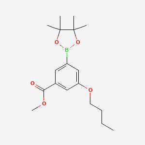The mechanism of action of Methyl 3-butoxy-5-(4,4,5,5-tetramethyl-1,3,2-dioxaborolan-2-yl)benzoate primarily involves its reactivity as a boronic ester. The boron atom in the dioxaborolane ring can form reversible covalent bonds with diols and other nucleophiles, making it a valuable intermediate in various chemical transformations. The compound’s ability to participate in cross-coupling reactions is facilitated by the palladium-catalyzed activation of the boronic ester group, leading to the formation of new carbon-carbon bonds.