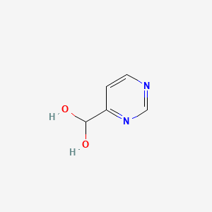 This compound exists in equilibrium with its anhydrous form, pyrimidine-4-carbaldehyde (B152824), and water. This hydration-dehydration equilibrium is fundamental to the chemistry of aldehydes.