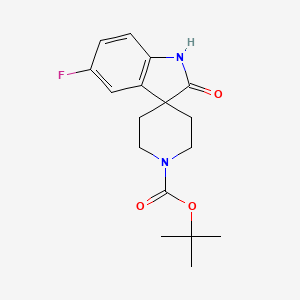 Uniqueness: 1’-Boc-5-fluoro-1,2-dihydro-2-oxo-spiro[3H-indole-3,4’-piperidine] is unique due to the combination of the Boc protecting group and the fluorine atom, which together enhance its chemical stability and potential for selective biological interactions. This makes it a valuable compound for further research and development in medicinal chemistry and related fields.
