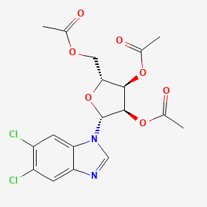This compound is structurally related to 5,6-Dichloro-1-beta-D-ribofuranosylbenzimidazole, a well-characterized inhibitor of ribonucleic acid polymerase transcription. The primary structural difference between these compounds lies in the presence of acetyl protecting groups at the 2', 3', and 5' positions of the ribofuranose ring in the tri-acetylated derivative. This modification significantly alters the compound's chemical properties, solubility characteristics, and biological activity profile compared to the parent compound.