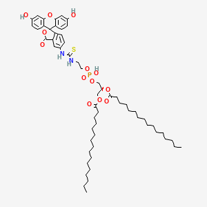 The mechanism of action of Fluorescein-Dipalmitoylphosphatidylethanolamine involves its integration into lipid bilayers, where it can interact with other lipids and proteins. The fluorescein moiety provides a fluorescent signal that can be detected using various imaging techniques, allowing researchers to monitor the behavior and interactions of lipids in real-time. The compound targets cellular membranes and pathways involved in lipid metabolism and transport.
