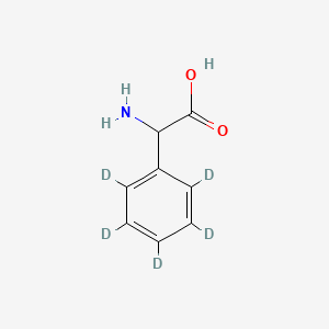 This compound is the deuterium-labeled form of 2-phenylglycine. The five hydrogen atoms on the phenyl ring are replaced with deuterium. This isotopic labeling makes it an invaluable tool in analytical chemistry, particularly in mass spectrometry-based applications.[4] It is primarily utilized as an internal standard for the accurate quantification of unlabeled 2-phenylglycine or other analogous analytes in complex biological matrices.[4] The use of a stable-isotope labeled internal standard is the gold standard in quantitative mass spectrometry as it co-elutes with the analyte and experiences similar matrix effects and ionization suppression, thus correcting for variations during sample preparation and analysis.