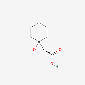 The mechanism of action of (2R)-1-oxaspiro[2.5]octane-2-carboxylic acid involves its interaction with specific molecular targets. The compound’s epoxide ring can react with nucleophilic sites on proteins or enzymes, potentially inhibiting their function. The carboxylic acid group can also participate in hydrogen bonding and electrostatic interactions, influencing the compound’s binding affinity and specificity.