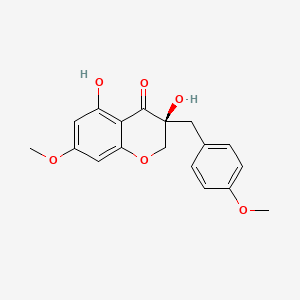 This compound is characterized by a 3-benzyl-4-chromanone core structure. The systematic name for this compound is (R)-3-(4-hydroxybenzyl)-5,8-dihydroxy-7-methoxy-4-chromanone.