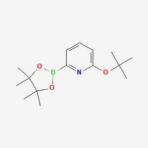 The mechanism of action of 2-(tert-Butoxy)-6-(4,4,5,5-tetramethyl-1,3,2-dioxaborolan-2-yl)pyridine involves its ability to participate in various chemical reactions due to the presence of reactive functional groups. The dioxaborolane moiety, in particular, is known for its role in Suzuki-Miyaura coupling reactions, where it acts as a boron source for the formation of carbon-carbon bonds. The tert-butoxy group can also influence the reactivity and stability of the compound, making it a versatile intermediate in organic synthesis.
