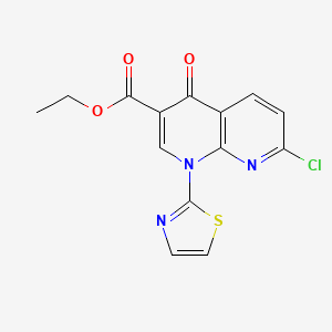 The mechanism by which Ethyl 7-chloro-4-oxo-1-(thiazol-2-yl)-1,4-dihydro-1,8-naphthyridine-3-carboxylate exerts its effects involves its interaction with specific molecular targets and pathways. The compound may bind to enzymes or receptors, leading to the modulation of biological processes. The exact mechanism depends on the specific application and the biological system .