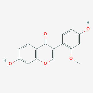 This compound is a member of the isoflavonoid class of secondary metabolites, which play crucial roles in plant defense mechanisms and have garnered significant interest for their potential pharmacological applications. The biosynthesis of this compound is an extension of the general phenylpropananoid pathway, a central metabolic route in plants responsible for the synthesis of a wide array of phenolic compounds.