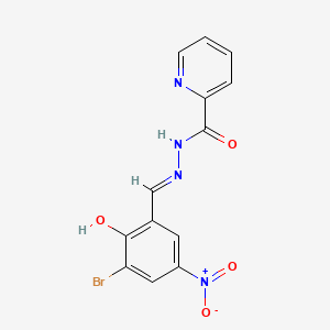 N’-{3-bromo-2-hydroxy-5-nitrobenzylidene}-2-pyridinecarbohydrazide is unique due to the presence of the bromine atom, which can influence its reactivity and interaction with other molecules. The combination of the bromine atom with the nitro and hydroxyl groups provides a distinct set of chemical properties that can be leveraged in various applications.