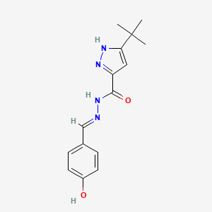 3-tert-butyl-N'-(4-hydroxybenzylidene)-1H-pyrazole-5-carbohydrazide is a useful research compound. Its molecular formula is C15H18N4O2 and its molecular weight is 286.33g/mol. The purity is usually 95%.