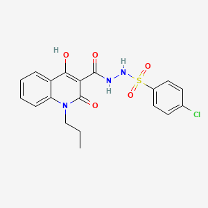 4-chloro-N'-[(4-hydroxy-2-oxo-1-propyl-1,2-dihydroquinolin-3-yl)carbonyl]benzenesulfonohydrazide is a useful research compound. Its molecular formula is C19H18ClN3O5S and its molecular weight is 435.9g/mol. The purity is usually 95%.