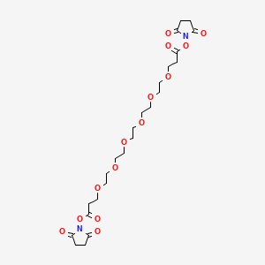 Hexaethylene Glycol (PEG6) Spacer : The central part of the molecule consists of a chain of six repeating ethylene glycol units. This PEG spacer arm is critical to the reagent's functionality. Its hydrophilic nature significantly increases the water solubility of the crosslinker and the resulting conjugate, which is particularly beneficial when working with hydrophobic molecules or in aqueous biological environments. Furthermore, the PEG chain provides a defined spacer length, which can be crucial for maintaining the biological activity of the conjugated molecules and can help reduce non-specific interactions and potential immunogenicity.