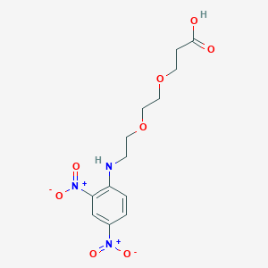 DNP-PEG2-acid is a heterobifunctional linker molecule widely utilized in biomedical research and drug development. It incorporates three key chemical moieties: a 2,4-dinitrophenyl (DNP) group, a hydrophilic polyethylene glycol (PEG) spacer, and a terminal carboxylic acid. This unique combination of functionalities makes it a valuable tool for a variety of bioconjugation applications, including the development of antibody-drug conjugates (ADCs), immunoassays, and targeted drug delivery systems.[1]