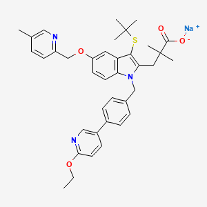 sodium;3-[3-tert-butylsulfanyl-1-[[4-(6-ethoxypyridin-3-yl)phenyl]methyl]-5-[(5-methylpyridin-2-yl)methoxy]indol-2-yl]-2,2-dimethylpropanoate | |