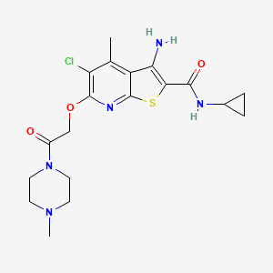 CC1=C2C(=C(SC2=NC(=C1Cl)OCC(=O)N3CCN(CC3)C)C(=O)NC4CC4)N | |