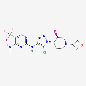InChI=1S/C17H20ClF4N7O/c1-23-15-10(17(20,21)22)4-24-16(27-15)26-12-5-25-29(14(12)18)13-2-3-28(6-11(13)19)9-7-30-8-9/h4-5,9,11,13H,2-3,6-8H2,1H3,(H2,23,24,26,27)/t11-,13-/m0/s1 | |