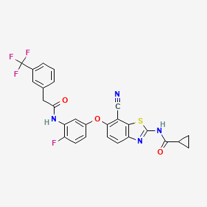 C1CC1C(=O)NC2=NC3=C(S2)C(=C(C=C3)OC4=CC(=C(C=C4)F)NC(=O)CC5=CC(=CC=C5)C(F)(F)F)C#N | |