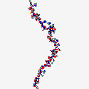 CC[C@H](C)[C@@H](C(=O)N[C@@H](CCCNC(=N)N)C(=O)N[C@@H](CO)C(=O)N[C@@H](CC1=CC=CC=C1)C(=O)NCC(=O)N[C@H]2CSSC[C@H](NC(=O)[C@@H](NC(=O)CNC(=O)[C@@H](NC(=O)[C@@H](NC2=O)CCCNC(=N)N)CC3=CC=CC=C3)[C@@H](C)O)C(=O)N[C@@H]([C@@H](C)O)C(=O)N[C@@H](C(C)C)C(=O)N[C@@H](CCC(=O)N)C(=O)N[C@@H](CCCCN)C(=O)N[C@@H](CC(C)C)C(=O)N[C@@H](C)C(=O)N[C@@H](CC4=CN=CN4)C(=O)N[C@@H](CCC(=O)N)C(=O)N[C@@H]([C@@H](C)CC)C(=O)N[C@@H](CC5=CC=C(C=C5)O)C(=O)N[C@@H](CCC(=O)N)C(=O)N[C@@H](CC6=CC=CC=C6)C(=O)N[C@@H]([C@@H](C)O)C(=O)N[C@@H](CC(=O)O)C(=O)N[C@@H](CCCCN)C(=O)N[C@@H](CC(=O)O)C(=O)N[C@@H](CCCCN)C(=O)N[C@@H](CC(=O)O)C(=O)N[C@@H](CC(=O)N)C(=O)N[C@@H](C(C)C)C(=O)N[C@@H](C)C(=O)N7CCC[C@H]7C(=O)N[C@@H](CCCNC(=N)N)C(=O)N[C@@H](CO)C(=O)N[C@@H](CCCCN)C(=O)N[C@@H]([C@@H](C)CC)C(=O)N[C@@H](CO)C(=O)N8CCC[C@H]8C(=O)N[C@@H](CCC(=O)N)C(=O)NCC(=O)N[C@@H](CC9=CC=C(C=C9)O)C(=O)N)NC(=O)CNC(=O)[C@H](CCC(=O)N)NC(=O)[C@H](CC1=CC=CC=C1)NC(=O)[C@H](CC(=O)N)NC(=O)[C@H](CC(=O)N)NC(=O)[C@H](CCSC)NC(=O)[C@H](CO)NC(=O)[C@H](CCC(=O)N)NC(=O)[C@H](CCCNC(=N)N)NC(=O)[C@H](CC1=CC=C(C=C1)O)N | |
