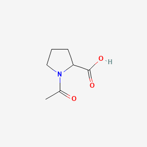 This compound is structurally defined as (2S)-1-acetylpyrrolidine-2-carboxylic acid.[3] It is classified as an N-acetyl-L-amino acid and an N-acylpyrrolidine.[2][3] A key structural feature is the amide bond formed between the acetyl group and the secondary amine of the proline ring. Rotation around this C-N bond is restricted, leading to the existence of two distinct rotational isomers (rotamers): cis and trans.[5][7] The trans conformer is generally more prevalent, though the equilibrium between the two is sensitive to solvent polarity and pH.[5][8][9] This cis-trans isomerism is a critical factor in the structure of proline-containing peptides and proteins.