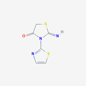 The current academic focus on this compound and its analogues centers on leveraging its unique hybrid structure for potential therapeutic applications, particularly as antifungal and anticancer agents. This specific molecule is a chemical hybrid that combines the 2-imino-thiazolidin-4-one core with a thiazole (B1198619) ring at the N3 position. The thiazole moiety itself is a known pharmacophore present in many biologically active compounds, making this combination particularly promising. mdpi.com