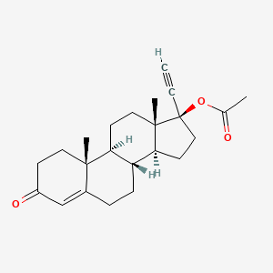 The compound (8R,9S,10R,13S,14S,17R)-17-ethynyl-10,13-dimethyl-3-oxo-2,3,6,7,8,9,10,11,12,13,14,15,16,17-tetradecahydro-1H-cyclopenta[a]phenanthren-17-yl acetate is a synthetic steroidal compound. It is structurally related to naturally occurring steroids and is often used in various scientific and medical applications due to its unique properties.