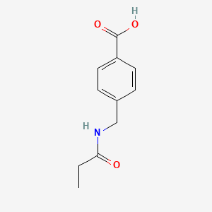 The exact mechanism of action of 4-(Propanamidomethyl)benzoic acid depends on its specific application. In biological systems, it may interact with enzymes or receptors, influencing various biochemical pathways. The propanamidomethyl group can enhance the compound’s ability to bind to specific molecular targets, thereby modulating their activity.