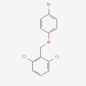 4-Bromophenyl-(2,6-dichlorobenzyl)ether is an aromatic ether characterized by a 4-bromophenyl group linked via an oxygen atom to a 2,6-dichlorobenzyl moiety. Its structure confers unique physicochemical properties, such as high lipophilicity and stability, making it valuable in organic synthesis and pharmaceutical applications.