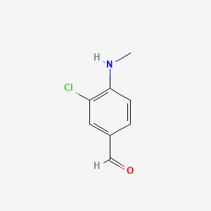 This compound is a high-purity intermediate critical in pharmaceutical synthesis and agrochemical research. Its structure features a benzaldehyde core substituted with a chlorine atom at the 3-position and a methylamino group (-NHCH₃) at the 4-position. This configuration enhances reactivity in nucleophilic aromatic substitution and condensation reactions, making it valuable for constructing heterocyclic frameworks in drug development .