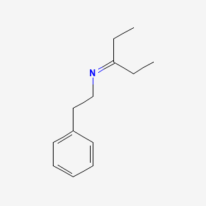 The synthesis of pentan-3-ylidene(2-phenylethyl)amine is a classic example of imine formation, a reversible reaction between a carbonyl compound (pentan-3-one) and a primary amine (2-phenylethylamine). nih.gov The process involves the elimination of a water molecule and is generally facilitated by acid catalysis. nih.govuiowa.edu The reaction mechanism can be dissected into several key steps, and its efficiency is highly dependent on the pH of the reaction medium.