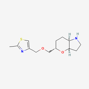 (3aR,5S,7aR)-5-(((2-methylthiazol-4-yl)methoxy)methyl)octahydropyrano[3,2-b]pyrrole is unique due to its specific stereochemistry and the presence of both pyrrole and pyran rings. This structural uniqueness contributes to its distinct chemical and biological properties, making it a valuable compound for various research applications.