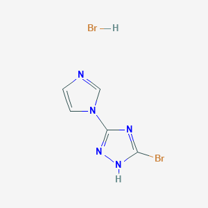 The mechanism of action of 3-bromo-5-(1H-imidazol-1-yl)-1H-1,2,4-triazole hydrobromide involves its interaction with specific molecular targets. The compound can bind to enzymes or receptors, inhibiting their activity or altering their function. The exact pathways depend on the biological context and the specific target molecules involved.