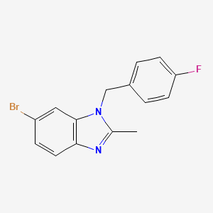 6-Bromo-1-(4-fluorobenzyl)-2-methyl-1H-benzo[d]imidazole is a synthetic organic compound belonging to the benzimidazole family. Benzimidazoles are known for their diverse biological activities and are used in various pharmaceutical and industrial applications. This particular compound features a bromine atom at the 6th position, a fluorobenzyl group at the 1st position, and a methyl group at the 2nd position of the benzimidazole ring.