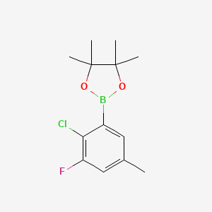 The mechanism of action of 2-Chloro-3-fluoro-5-methylphenylboronic acid pinacol ester involves its reactivity as a boronic ester. In Suzuki-Miyaura coupling, the boronic ester undergoes transmetalation with a palladium catalyst, followed by reductive elimination to form the desired carbon-carbon bond. The molecular targets and pathways involved depend on the specific application and reaction conditions.