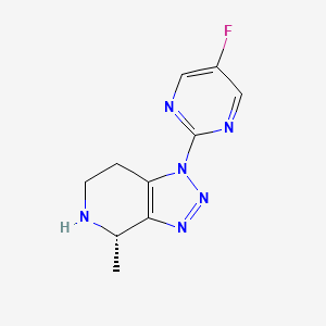 The mechanism of action of (S)-1-(5-Fluoropyrimidin-2-yl)-4-methyl-4,5,6,7-tetrahydro-1H-[1,2,3]triazolo[4,5-c]pyridine involves its interaction with specific molecular targets. The fluoropyrimidine moiety can engage in hydrogen bonding and π-π interactions with biological macromolecules, while the triazolopyridine ring system may enhance binding affinity and specificity. These interactions can modulate the activity of enzymes, receptors, or other proteins, leading to various biological effects .