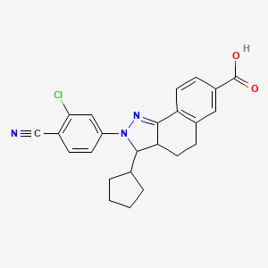 C1CCC(C1)C2C3CCC4=C(C3=NN2C5=CC(=C(C=C5)C#N)Cl)C=CC(=C4)C(=O)O |