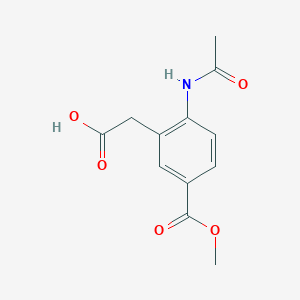 Alpha-(2-Acetylamino-5-methoxycarbonylphenyl)acetic acid is a useful research compound. Its molecular formula is C12H13NO5 and its molecular weight is 251.23 g/mol. The purity is usually 95%.