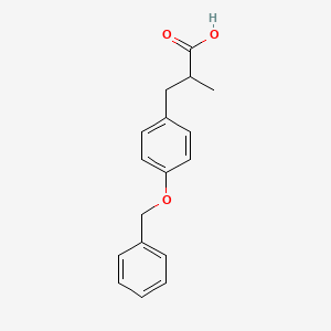 2-(4-Benzyloxybenzyl)propionic acid (CAS No.: 68718-09-2) is a substituted phenylpropionic acid derivative with the molecular formula C₁₆H₁₆O₂ and a molecular weight of 240.30 g/mol . Structurally, it features a benzyloxy group (-OCH₂C₆H₅) attached to the para position of the phenyl ring, which is further linked to a propionic acid backbone. This compound is primarily utilized as an intermediate in organic synthesis, particularly for the preparation of bioactive molecules or functional materials.