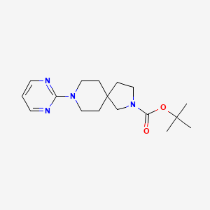 tert-butyl 8-pyrimidin-2-yl-2,8-diazaspiro[4.5]decane-2-carboxylate is a complex organic compound that belongs to the class of spiro compounds. These compounds are characterized by a unique structure where two rings are connected through a single atom. The presence of the pyrimidinyl group and the spiro linkage makes this compound particularly interesting for various scientific applications.