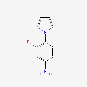 The structure of 3-fluoro-4-(1H-pyrrol-1-yl)aniline makes it a valuable intermediate in organic synthesis. The presence of a primary amine group allows for a wide range of chemical transformations, enabling the construction of more complex molecular architectures. The fluorine atom and the pyrrole (B145914) ring also impart specific electronic and steric properties that can be exploited in the design of new compounds.