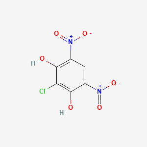 The chlorine atom, also an electron-withdrawing group via induction, further contributes to the electron-deficient nature of the aromatic ring. The interplay of these substituents—the hydroxyl groups of the benzenediol, the chloro group, and the dinitro groups—creates a complex electronic environment that dictates the compound's chemical behavior and makes it a specific and valuable building block in organic synthesis.