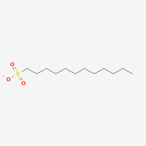 Dodecane-1-sulfonate, also known as sodium lauryl sulfonate, is an organic chemical compound classified as an anionic alkyl sulfonate. ontosight.airjeec.ro Anionic surfactants are characterized by a negatively charged hydrophilic head group. wikipedia.org In the case of this compound, this head is a sulfonate group (SO₃⁻), which is attached to a twelve-carbon hydrophobic alkyl chain (dodecyl chain). ontosight.aiatamanchemicals.com This amphiphilic structure, possessing both water-attracting (hydrophilic) and water-repelling (hydrophobic) components, is fundamental to its function as a surfactant, enabling it to reduce the surface tension between different phases, such as oil and water. atamanchemicals.comsolubilityofthings.com