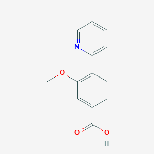 3-Methoxy-4-(pyridin-2-yl)benzoic acid is a benzoic acid derivative featuring a methoxy group at the 3-position and a pyridin-2-yl substituent at the 4-position of the aromatic ring.