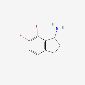 6,7-difluoro-2,3-dihydro-1H-inden-1-amine is a fluorinated organic compound with the molecular formula C9H9F2N It is a derivative of indan, a bicyclic hydrocarbon, where two hydrogen atoms are replaced by fluorine atoms at the 6 and 7 positions, and an amine group is attached to the 1 position