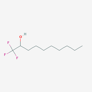 1,1,1-Trifluorodecan-2-ol is a fluorinated secondary alcohol with the molecular structure CH3(CH2)7CH(OH)CF3. Its CAS number is 111423-27-9 , and the (S)-(-)-enantiomer is noted for its high enantiomeric excess (>98% ee). The compound features a 10-carbon alkyl chain (decan) with a hydroxyl group at the second carbon and a trifluoromethyl (-CF3) group at the first carbon. The presence of fluorine atoms significantly impacts its electronic properties, solubility, and chemical reactivity. While the provided evidence lacks explicit physical data (e.g., boiling point, solubility), structural analogs and related fluorinated alcohols offer insights into its behavior.
