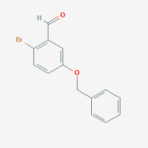 The mechanism of action of 5-(Benzyloxy)-2-bromobenzaldehyde depends on its specific application. In chemical reactions, the benzyloxy and bromine substituents influence the reactivity and selectivity of the compound. The aldehyde group can participate in nucleophilic addition reactions, while the bromine atom can undergo substitution reactions. The molecular targets and pathways involved vary based on the specific chemical or biological context in which the compound is used.