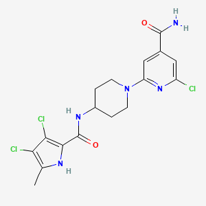 The synthesis of 2-chloro-6-(4-(3,4-dichloro-2-methyl-1H-pyrrole-5-carboxamido)piperidin-1-yl)isonicotinamide typically involves multi-step organic reactions. The process begins with the preparation of the pyridine ring, followed by the introduction of the chloro and carboxamide groups. The piperidine ring is then synthesized and attached to the pyridine ring. Finally, the pyrrole moiety is introduced through a series of coupling reactions .